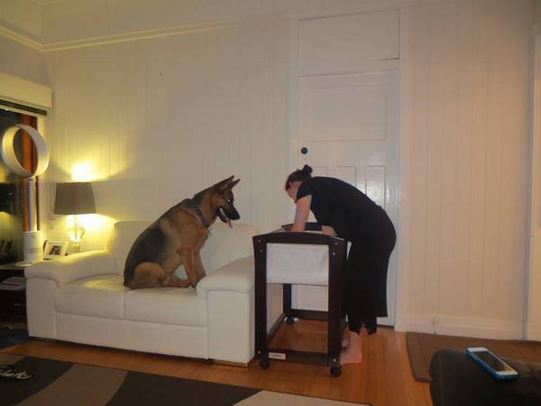 Kieserhund Cuda's Legacy (Hugo) looking over baby Benjamin