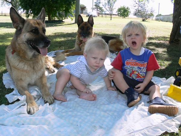 Kieserhund Barossa Pearl and her daughter Kierserhund Ku De Ta keeping an eye on the boys.