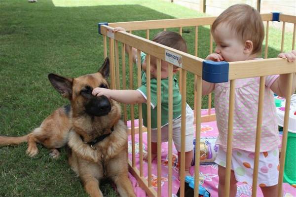 Kieserhund Quintessential with the twins and taking everything they dish out